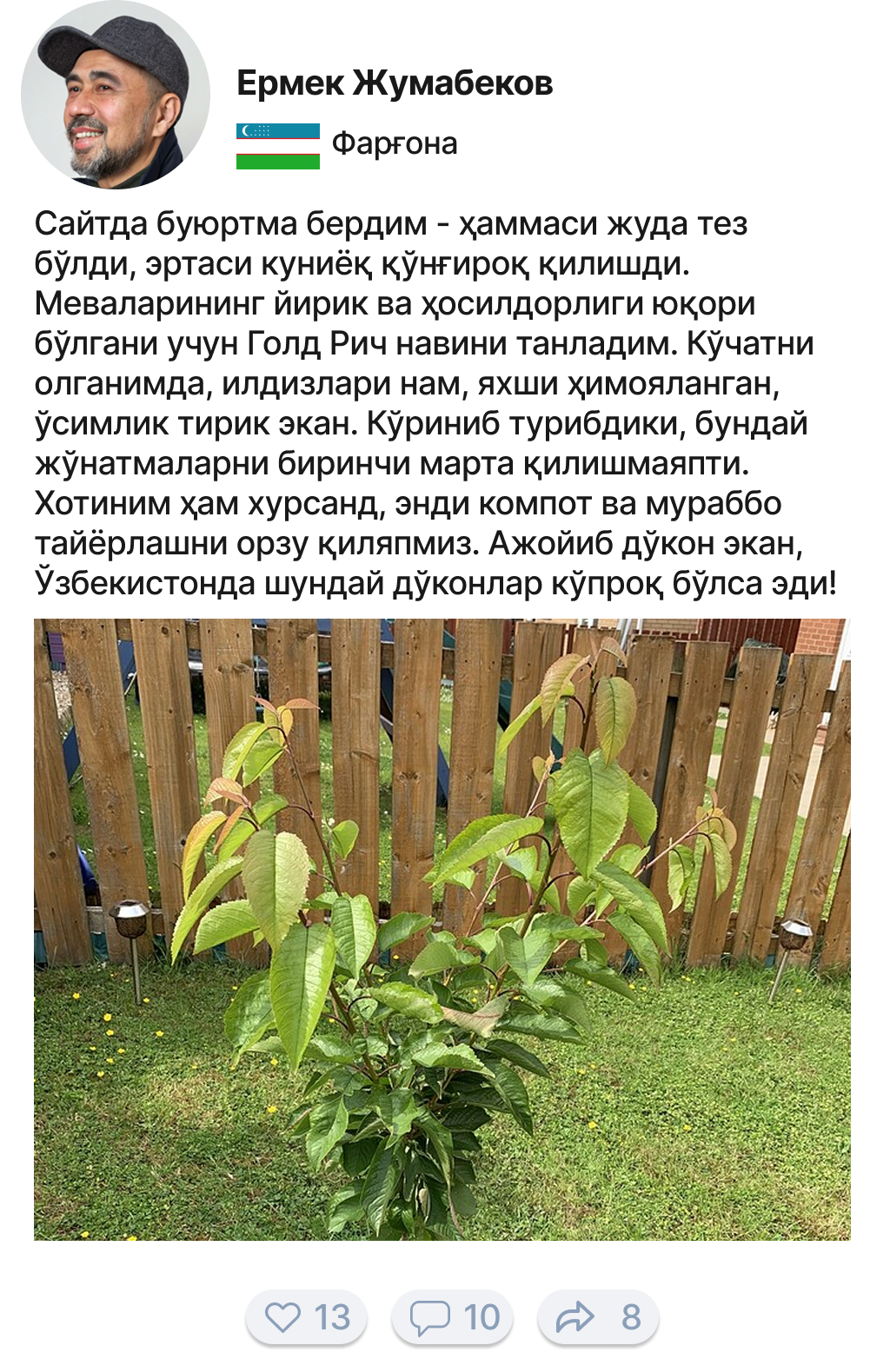 • Хусусий боғда, дала ҳовлида ёки фермер хўжалигида етиштириш мумкин.