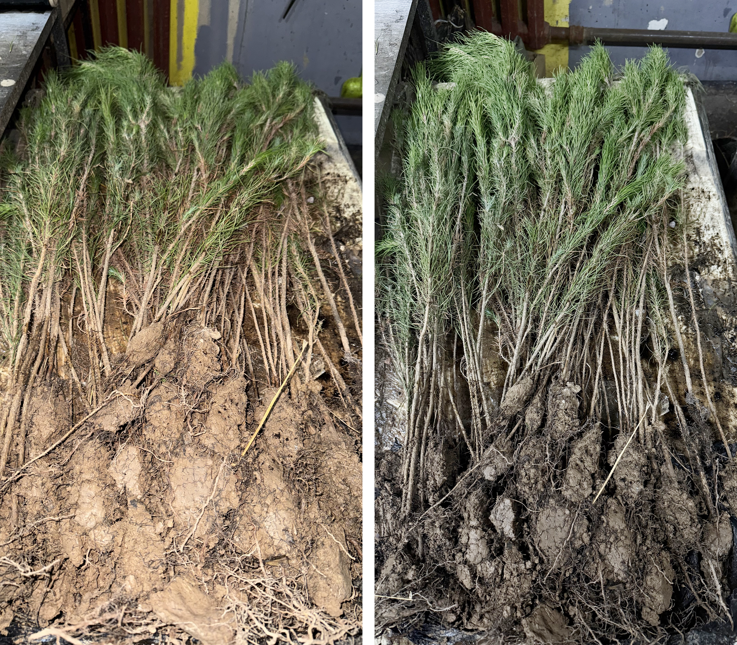 После обработки корни помещаются в специальный питательный гумус. Он обогащён минеральными удобрениями, гидроперлитом и микроэлементами, способствующими укоренению. Мы рекомендуем не выбрасывать этот субстрат, а высыпать его в посадочную яму — он даст растению хороший старт. Такая подпитка особенно полезна в первые недели после высадки. Благодаря ей саженец легче переносит пересадку и быстрее идёт в рост.